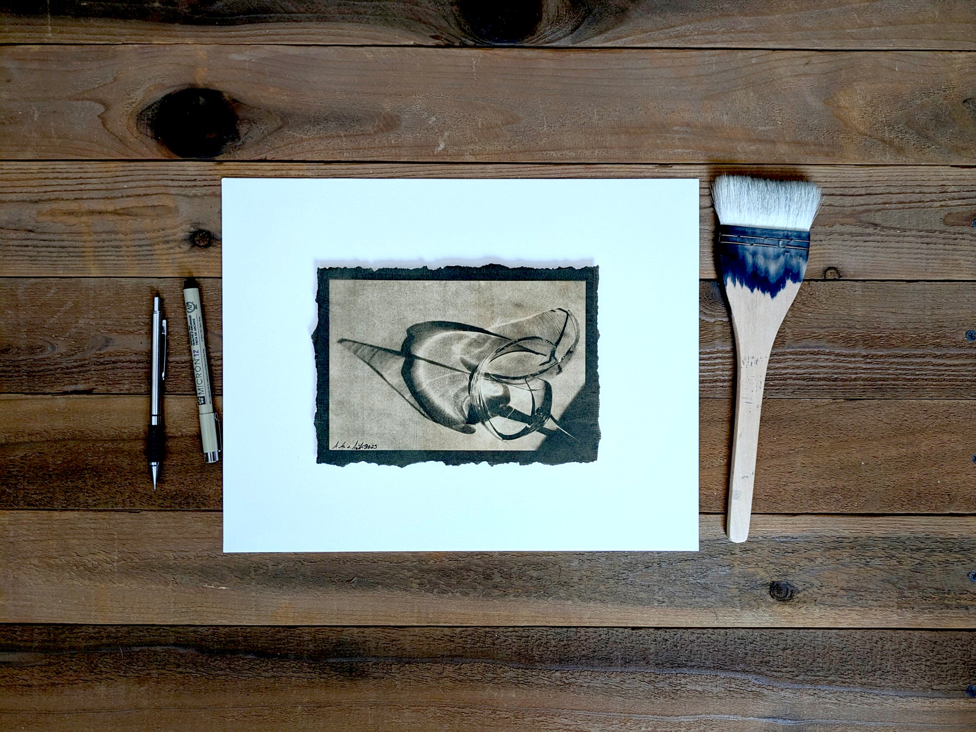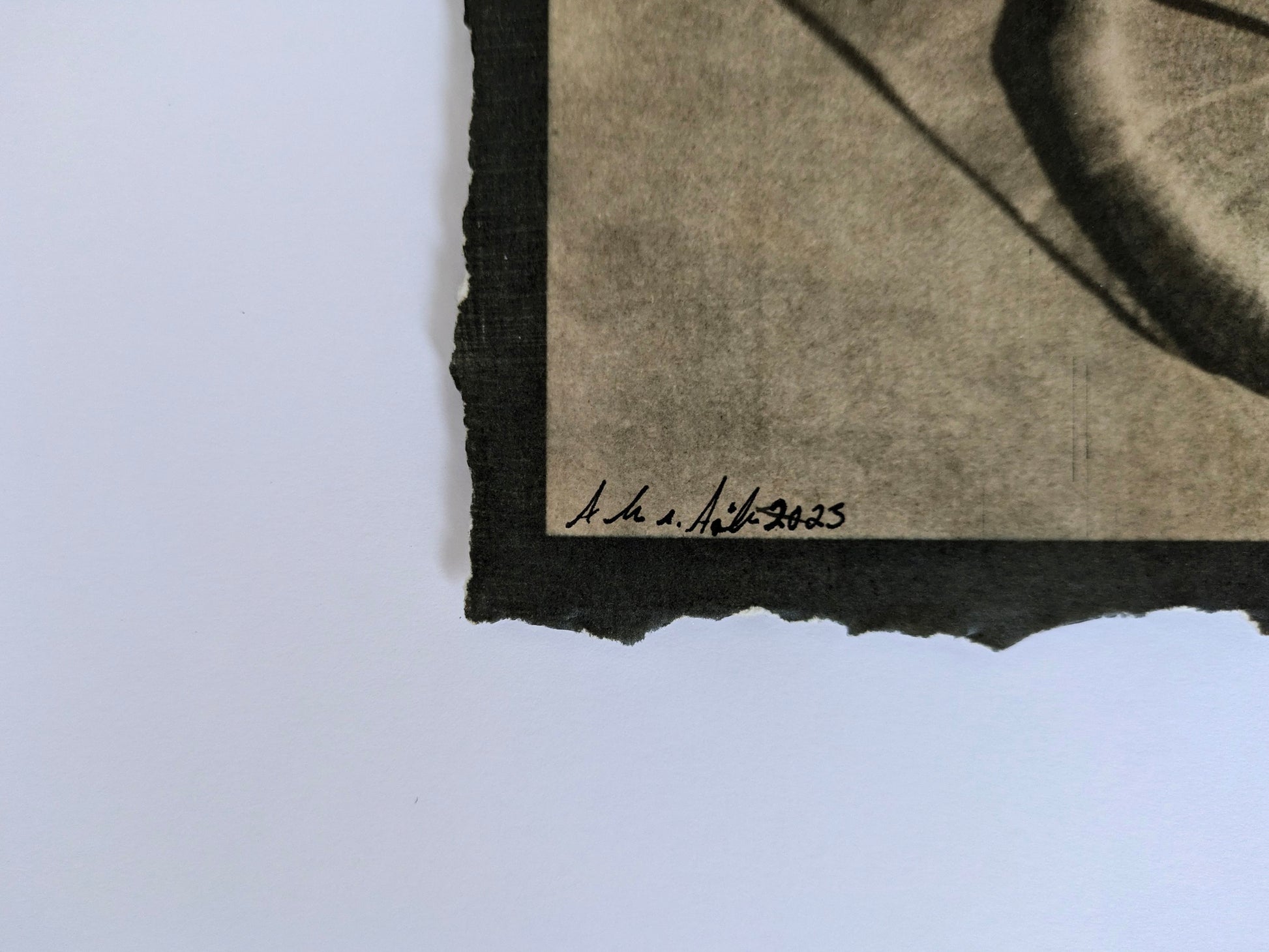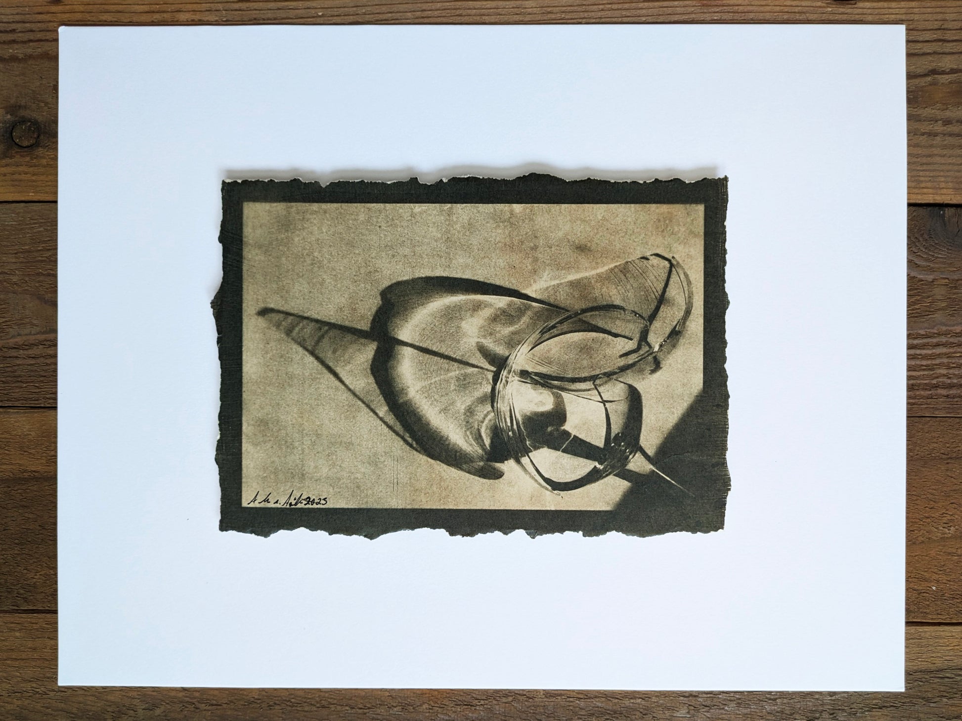 "Broken in Bloom #3" is part of a striking photographic series that reveals how beauty and hope arise from hardship. This carefully crafted toned cyanotype measures 8 by 5.5 inches and features a subtle deckled edge. Printed on archival hot press watercolor paper, it is beautifully float mounted on an 11 x 17 inch matte board, ready to be framed and showcased.