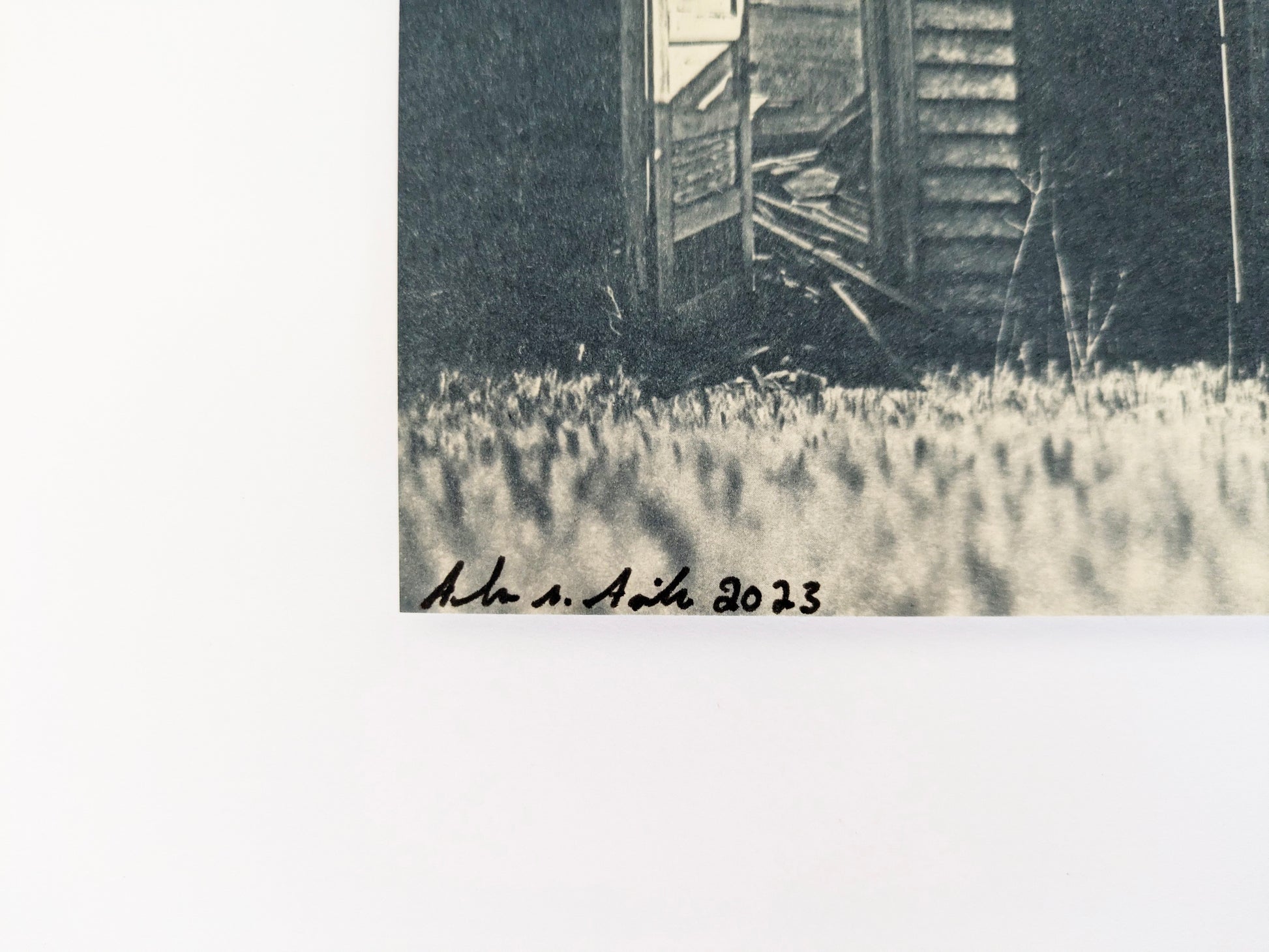 Discover the surreal allure of “The Wonderful Forgotten,” an original handmade toned cyanotype print crafted by the artist. Approximately 8x10 inches in size and printed on archival hot press watercolor paper, this remarkable artwork is float mounted on an 11x17 inch matteboard, ready to be framed and enhance your living space.