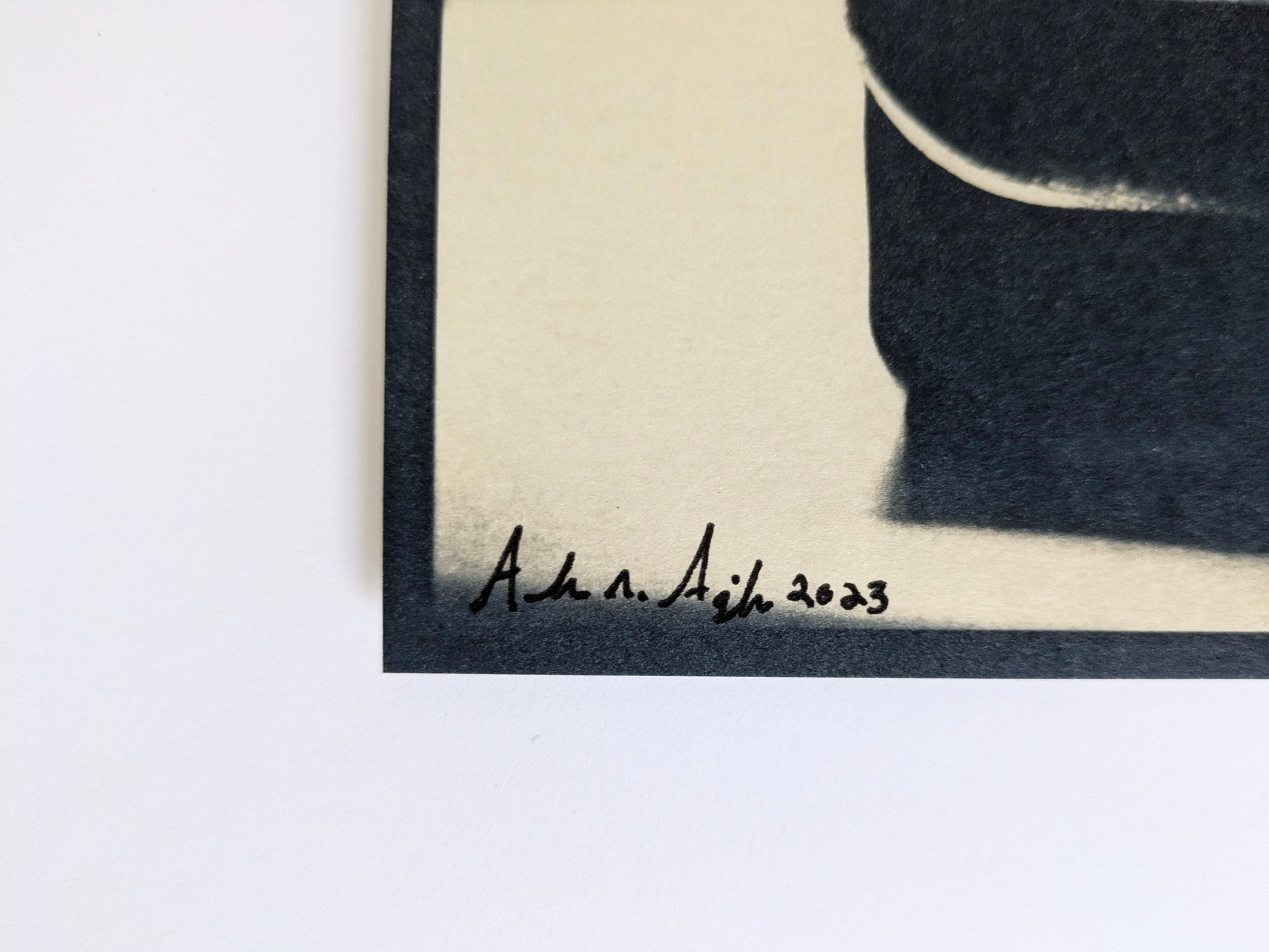 This unique 8 by 11-inch cyanotype print is crafted from an original photograph by the artist. It is coffee-toned and float-mounted on an 11 by 17-inch matte board, prepared for immediate framing.